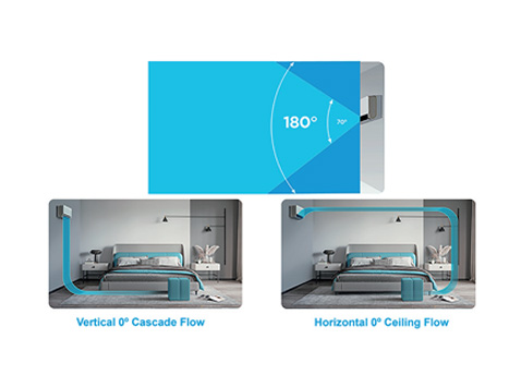 Χρησιμοποιώντας τη μία ή και τις δύο εξόδους αέρα ανάλογα με τη λειτουργία θέρμανσης/ψύξης, η μονάδα μπορεί να κλιματίσει το δωμάτιο πιο αποτελεσματικά.